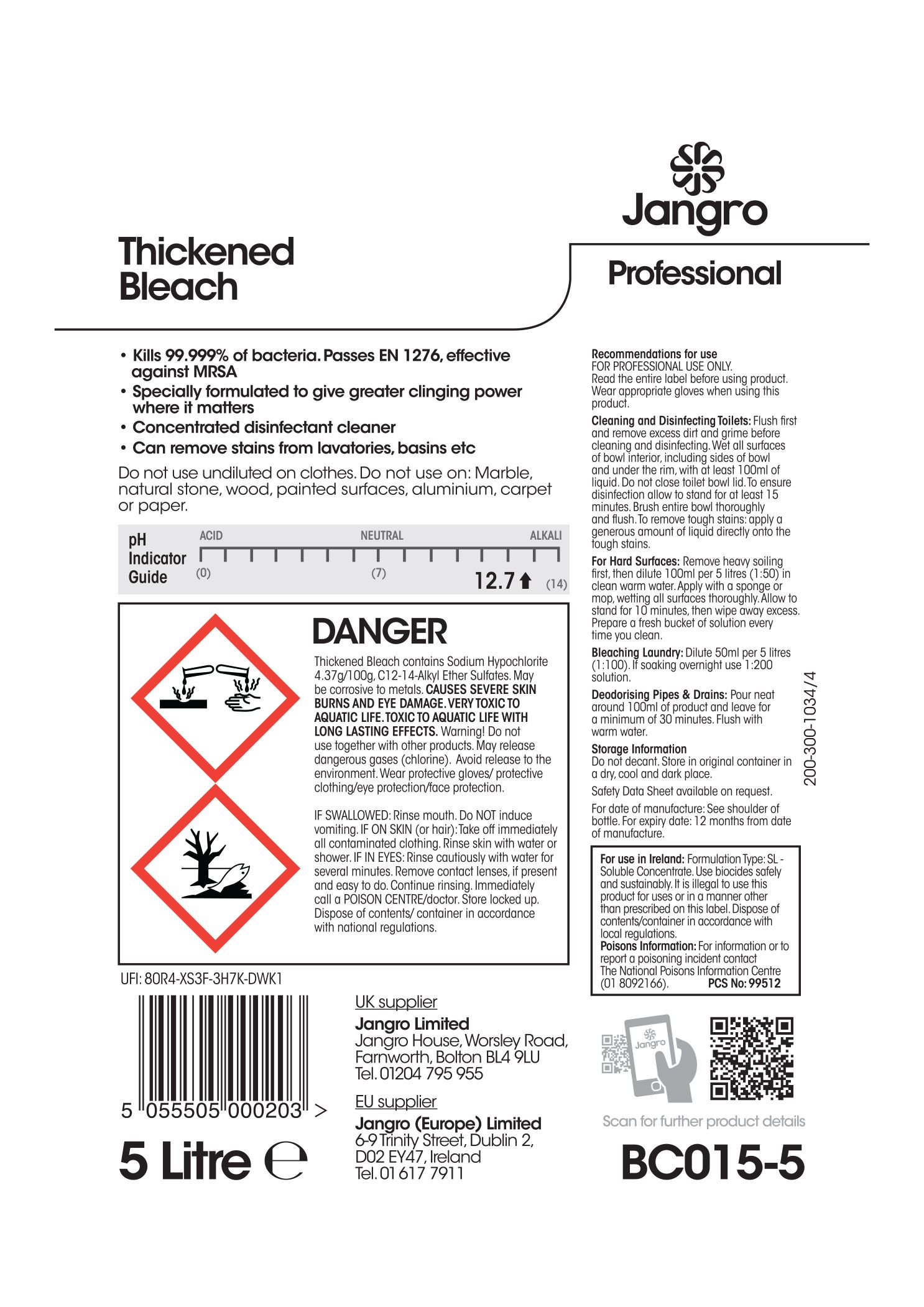 This specially formulated thickened bleach provides total protection against germs with a greater clinging power where it matters. Used to disinfect and cure unpleasant smells caused by waste matter and to remove stains from toilets and basins.